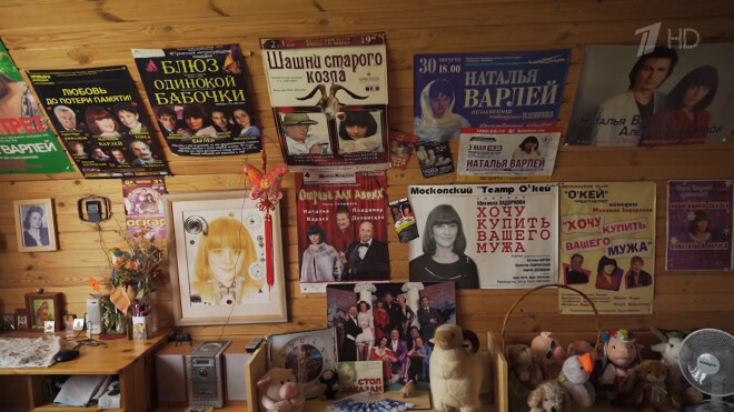 Внутри дома имеются камин и библиотека, а стена в одной из комнат полностью посвящена творческой деятельности Натальи Владимировны – она вся увешана афишами и плакатами.