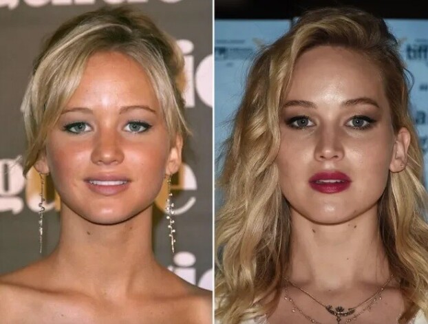 Исполнительница роли Китнисс Эвердин, легендарной «Сойки-пересмешницы» тоже не обладала таким идеальным лицом от рождения. Достаточно посмотреть на ее ранние фотографии: заметно изменилась форма носа, разрез глаз, губы. Над ними безусловно поработали специалисты.