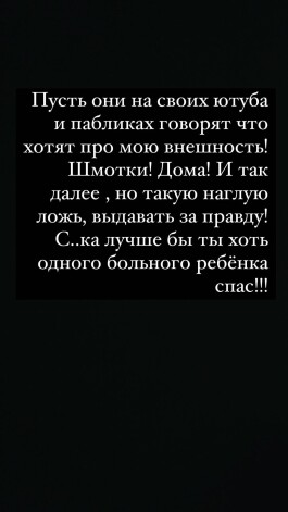 На днях появилась информация о том, что Ксения якобы берет за публикацию о помощи тяжелобольному малышу большие деньги. Бородина в ярости из-за подобной клеветы в свой адрес. Она намерена наказать людей, распространяющих недостоверную информацию, пишет starhit.ru. «Миллион рублей (12 000 евро) за Stories для сбора на укол ребенку? Пусть они в своих пабликах говорят про мою внешность, шмотки, дома! Но такую наглую ложь выдавать за правду... Лучше бы хоть одного больного ребенка спасли! — посетовала 38-летняя звезда. — Есть вещи, которые не пропущу! Это вопрос принципа! Эти люди не спасли ни одну жизнь и еще имеют наглость вещать у себя в Instagram или на YouTube-каналах наглую ложь! Без доказательств! Без каких либо оснований! Чего вы в жизни добились, кроме как критиковать публичных людей?! Вы скажете, мол, Ксения, не обращай внимания. Но как не обращать? Запасайтесь адвокатами, если денег хватит! Сплетники! Отвечать будете за свои языки!»