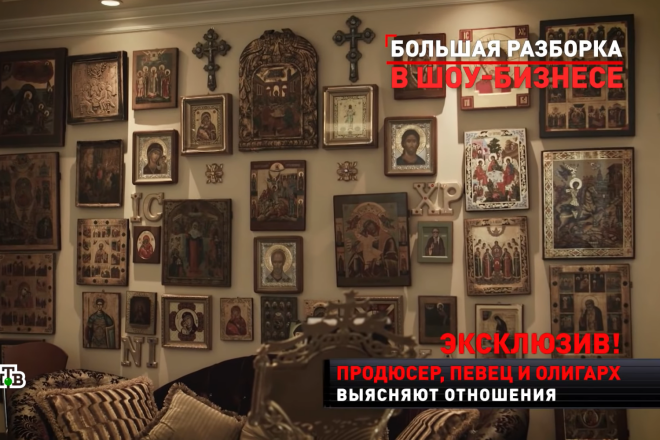 В то же время Авраам Руссо всеми силами подчеркивает свою приверженность христианству. Вот и в его личном поместье нашлось место для домашней часовни, сплошь увешанной иконами. "Это первая комната — молитвенная комната. На самом деле для меня это одна из главнейших комнат, где действительно духовное уединение", - уточняет певец.