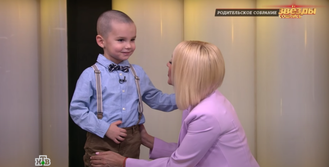 Отвечая на вопросы ведущей программы Леры Кудрявцевой, мальчик сказал, что любит рисовать, ходит в детский сад и мечтает стать в будущем спасателем. Кончаловский с улыбкой опроверг слова сына: «Наврал он. Не очень он любит рисовать, а мечтает стать водителем бетоновоза, как папа. Я работал водителем бетоновоза, когда мне было 18», — подытожил Егор Кончаловский.