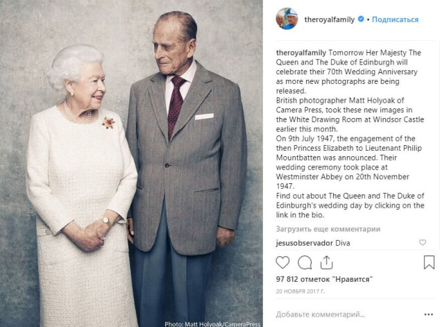 Церемония бракосочетания Филиппа и Елизаветы транслировалась по радио BBC — телевизоры в послевоенной Европе были редкостью. 200 млн человек по всему миру слушали, как молодожены дают брачные клятвы в Вестминстерском аббатстве.