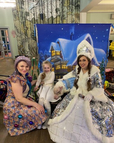 Вместе с Дедом Морозом и Снегурочкой на кадрах появились животные. Лиза Галкина не побоялась взять на руки суриката, с которым позировала на камеру. А по соседству с ней расположились мини-пиги, или попросту свинки.