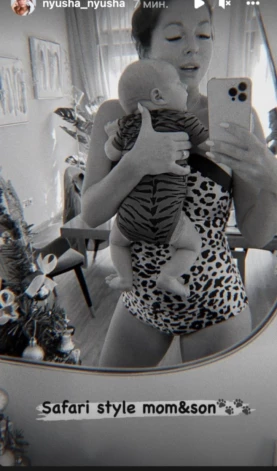 А вот Нюше всего 31 год, но она не так давно родила второго ребенка. Певица воспитывает дочку Симбу и сына, которому всего меся от роду. Недавно исполнительница хита «Чудо» запечатлелась в Дубае в леопардовом монокини. Она уже постройнела, но выбрала фасон, которые визуально скрывает живот. Артистка принарядила в костюмчик и сына, которого взяла на руки.