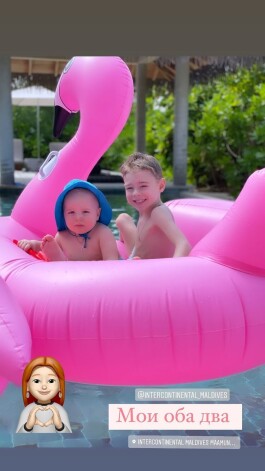Начало января Наталья Подольская и Владимир Пресняков с сыновьями провели в Куршевеле. Вдоволь накатавшись на снежных склонах, семья перебралась к океану. Накануне они прилетели на Мальдивы.