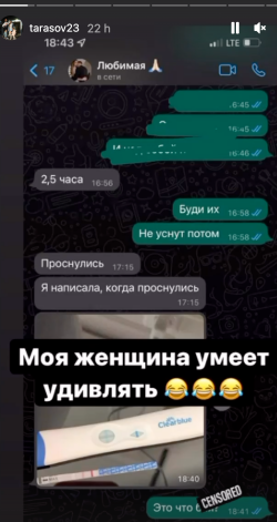 Футболист Дмитрий Тарасов опубликовал в личном блоге переписку с женой: Анастасия отправила ему фото с положительными тестами на беременность. Общественность тут же решила, что супруги в ожидании четвертого общего ребенка.