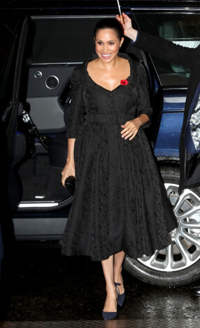 Как вы помните, жена принца Гарри появилась в эфире того самого скандального шоу Опры Уинфри в роскошном длинном платье с декольте и вышивкой в виде лотоса от Giorgio Armani.