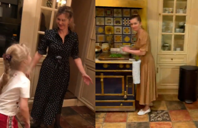 А с Лизой танцует на кухне, прибирая со стола после обеда. «Наша Мэри Поппинс — Оксана — внедрила творческий подход при уборке на кухне! Лизе нравится», — подписала домашние кадры с дочкой Примадонны.