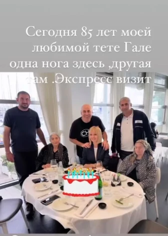 Продюсер поделился в сторис видео из ресторана, в котором отмечали юбилей. Валерия спела тете Пригожина песню про день рождения. Вместо именинного торта официант принес гостям тарелку с фруктами, украшенную бенгальскими огнями, пишет kp.ru. Продюсер уточнил, что визит за границу – кратковременный, и они с женой вскоре вернутся домой.