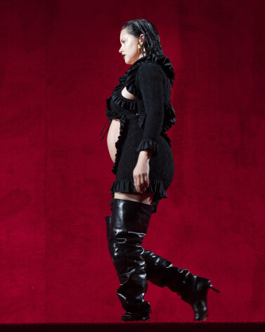 Беременная Адриана Лима прошлась по подиуму в мини с открытым животом и ботфортах до бедер