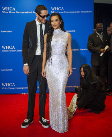 Накануне пара посетила мероприятие в Белом доме. Влюбленные дебютировали на красной дорожке как пара. Для выхода в свет Ким выбрала эффектный наряд. Модель появилась в сверкающем платье Balenciaga, которое выгодно подчеркнуло ее фигуру. Образ дополнил яркий макияж с акцентом на глаза. А Пит предстал в классическом костюме и кедах, дополнив образ солнцезащитными очками Prada.