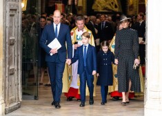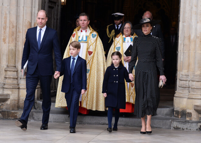 Герцогиня Кэтрин и принц Уильям с детьми Шарлоттой и Джорджем на Службе Памяти в честь принца Филиппа