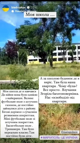 "Моя школа, где я учился. До войны она была одной из лучших. Большое футбольное поле с искусственным газоном, где постоянно занимались дети из района. Беговые дорожки с современным резиновым покрытием. Мини футбольное поле с искусственным покрытием. Баскетбольное поле. Тренажеры. Там было нереально классно. Там постоянно были дети", - написал Бедняков, опубликовав кадры руин.