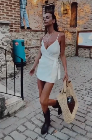 На видео, которое Екатерина Варнава опубликовала в Instagram, она грациозно прошлась по улице в белом мини-платье на бретелях и черных полусапожках. Это должно было выглядеть красиво, но увы, в комментариях все только и пишут о том, что хотят накормить звезду.