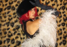 На днях Эрика вновь шокировала публику новыми кадрами. Короткая красно-черная лакированная куртка, ультра мини-юбка с леопардовой оторочкой, чулки в сетку и туфли на ярко-алой платформе и огромном каблуке.