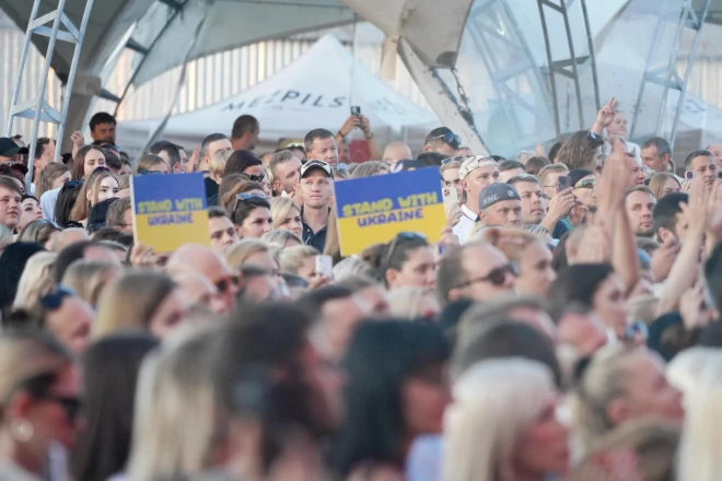 «Сегодня я буду петь для вас и для миллионов людей, разбросанных по миру, бежавших от ужасов войны, потерявших свои дома, родных, близких. Я буду петь для тех, кто встал на сторону добра. Потому что прав всегда тот, кто защищает свой дом, свою семью, свою страну», - обратилась певица к своим поклонникам и поприветствовала всех пришедших, как было обещано, на латышском языке, что вызвало бурю оваций у зрителей, среди которых также был латвийский певец Маркус Рива, российская журналистка Катерина Гордеева с дочкой.