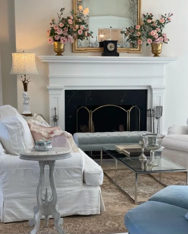 Оказалось, что и в этот раз дизайном дома занималась дизайнер и подруга актрисы Рэйчел Эшвелл. Специалист создала для молодоженов приятный интерьер в пастельных тонах, украсив дом вазами и "бабушкиным" декором с мелкими цветами.