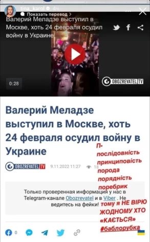 Тина Кароль подчеркнула, что не верит таким, как Меладзе, которые якобы осуждают войну, но своими действиями демонстрируют настоящую позицию — живут в стране-агрессоре, выступают там и иногда "раскаиваются" в соцсетях, пишет портал "Факты".