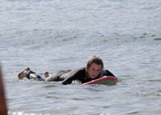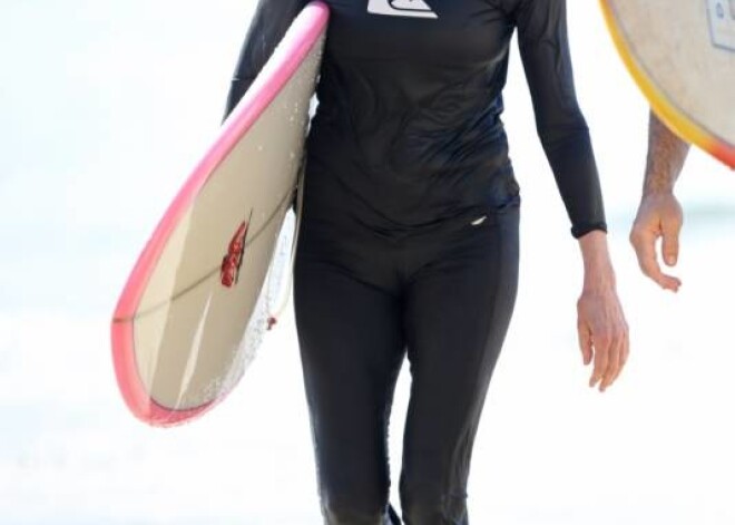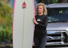 Ким Бейсингер на Гавайях занимается серфингом