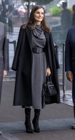 Королева Испании Летиция вышла в свет в элегантном, но непривычно мрачном наряде. Она посетила собрание молодежного фонда FAD в Мадриде, который занимается проблемами наркомании среди молодых людей, в сером платье и черном пальто, пишет Daily Mail.