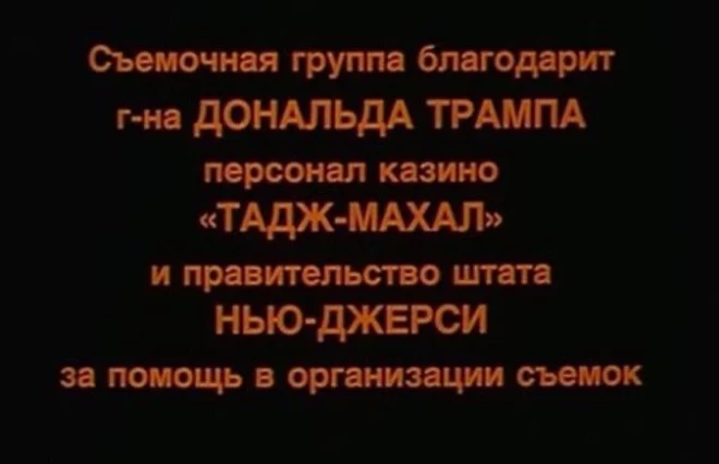 При этом Трамп попал в титры как хозяин казино — ему съемочная группа выразила благодарность.