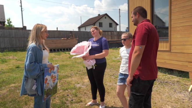 Общая стоимость дома, построенного по новейшей каркасной технологии, составляет почти 2 000 000 гривен. "Дом построен, и сегодня для меня это большой праздник, я очень счастлива! Хочу поздравить и обнять Елену, ее мужа и дочку. А также хочу поблагодарить поклонников со всего мира за то, что сделали это возможным. Новое жилье — это очень трогательно. Пусть это станет началом новой светлой, теплой, мирной главы в истории их прекрасной семьи," — прокомментировала Лобода, приехавшая посмотреть результат.