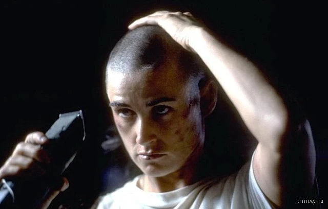 Американская актриса Деми Мур побрилась ради главной роли в фильме "Солдат Джейн". Это помогло известной красавице вжиться в роль военнослужащей, которая готова на все. Лента стала культовой и знаковой в карьере Деми. К тому же ультракороткая стрижка не испортила мягкие черты лица актрисы.
