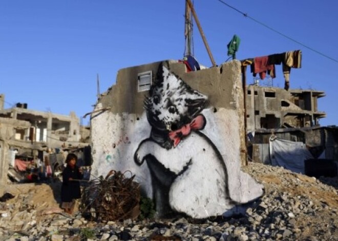 Бэнкси проник в сектор Газа через подземный тоннель и нарисовал на развалинах домов котенка, карусель и задумчивого человека.