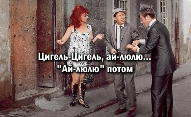 Что касается фразы "Цигель-цигель, ай-лю-лю!", которая вошла в русский фольклор в значении "быстрее" и "поторопись", то ее придумала сама исполнившая роль хитрой заграничной путаны Виктория Островская - и конкретного перевода на русский она не имеет.