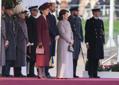 На этом мероприятии 42-летняя Кейт Миддлтон выбрала изысканный образ: бордовое пальто от Alexander McQueen и шляпу от Sahar Millinery, оттенок которых гармонировал с цветами флага Катара. Образ был дополнен украшениями, принадлежавшими королеве Елизавете II, включая серьги с жемчугом Бахрейна и японское жемчужное колье-чокер. Последний раз Кейт была замечена в этом украшении на похоронах принца Филиппа в апреле 2021 года.
