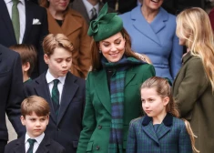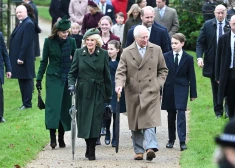 Образ в зеленых оттенках предпочла также жена короля Карла III Камилла. Принц Уильям и его сыновья оделись практически одинаково — в классические пальто и белые рубашки с галстуком, а принцесса Шарлотта позировала в пальто в клетку и с зеленым бантом на волосах.