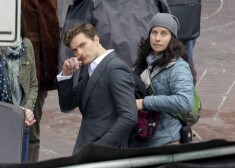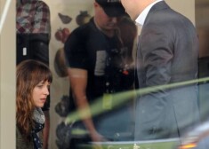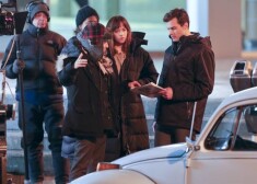 Дакота Джонсон и Джейми Дорнан на съемках «50 оттенков серого»