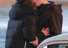 Дакота Джонсон и Джейми Дорнан снимают сцену поцелуя из «50 оттенков серого»
