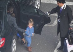 Виктория Бэкхем с дочерью Харпер в аэропорту