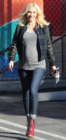Одна из самых стильных звезд западного шоу-бизнеса и во время третьей беременности продолжает одеваться в соответствии со своим неповторимым вкусом, умудряясь даже в джинсах и простой серой футболке выглядеть как икона стиля.
