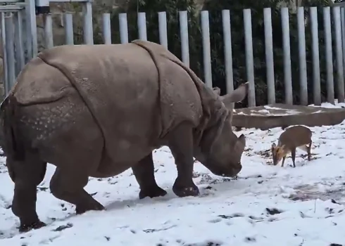 Реально & Невероятно12.01.2026ВИДЕО: эпическая дуэль в польском зоопарке - маленький олень вызвал на бой гигантского носорога