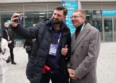 Президент Латвии Эдгар Ринкевич посетил олимпийскую деревню в Милане, где встретился с игроками сборной Латвии по хоккею.