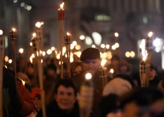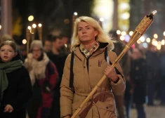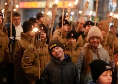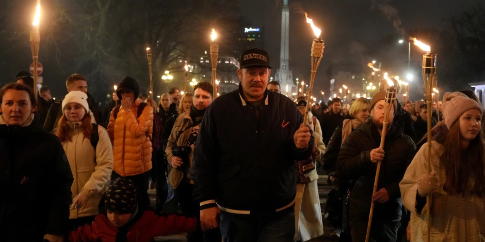 Сотни людей вышли на факельное шествие в честь Дня Лачплесиса (11.11.2025)