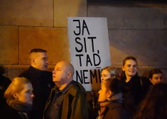 "Nosargāsim Māti Latviju" protesta akcija Doma laukumā (foto: Laura Baiba Balcere)