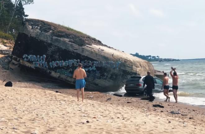 Видео дня: в Лиепае BMW X5 "искупался" в море