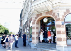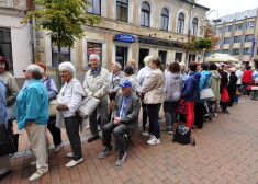 Люди в очереди у филиалов PNB banka в Даугавпилсе и Риге 22 августа 2019 года