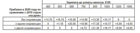 Кроме того, следует добавить, что в результате принятых изменений в наибольшем выигрыше будут работающие без иждивенцев. Например, у лица с зарплатой 500 евро до уплаты налогов в 2020 году в кошельке будет на 18,18 евро больше. В то же время у лиц с зарегистрированным одним иждивенцем и такой же зарплатой будет больше на 1,18 евро, а с двумя иждивенцами – на 0 евро.
