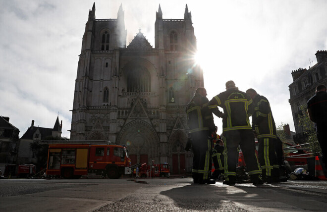 Пожар в соборе Святых Петра и Павла в Нанте был замечен в 7:30 утра, через 15 минут прибыли пожарные. На фотографиях видны столб дыма и пламя внутри собора, поднимающееся на высоту центрального нефа. Огонь нанес тяжелый урон интерьеру и реликвиям.