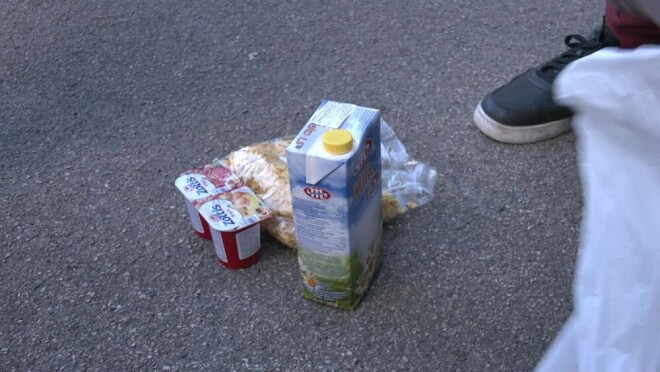 Ученики, встреченные у школы, рассказали передаче, что их позвали получить продуктовый пакет на следующую неделю. Он состоит из литра молока, хлопьев, хлебных палочек, двух йогуртов по 115 граммов, сухарей, а также 300 миллилитров сока.