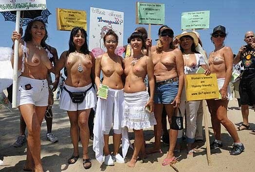 Члены американской организации GoTopless утверждают, что женщины имеют равные конституционные права на обнаженную грудь в общественных местах, как и мужчины. В настоящее время к женщинам, которые осмеливаются быть топлес на публике в США, применяются аресты, штрафы. Ежегодно полуобнаженные женщины сплачиваются на всей территории США в знак протеста против этого неравенства в законе и требуют, чтобы их основное право на топлесс в соответствии с 14-й поправкой к Конституции, признали.