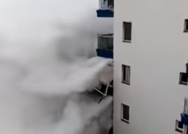 Гигантские волны обрушили балконы отеля на Тенерифе. Видео!