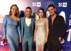 От беседы всех гостей отвлек призыв соведущего фестиваля Тимура Родригеза сосредоточится, потому что всех присутствующих "снимают 45 тысяч камер". Все сидящие за столиками сосредоточились, но не надолго.