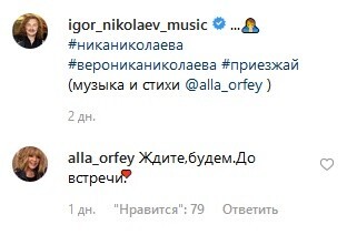 В сети умилились видео с участием дочери Игоря Николаева под песню Аллы Пугачевой. Ролик собрал множество комментариев, первый из которых был от самой Примадонны. "Ждите, будем. До встречи", - написала певица.