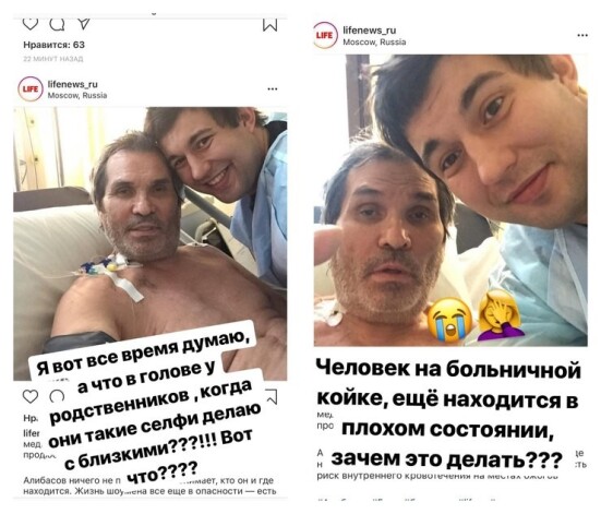 Однако поклонники артиста не согласны с Бородиной. В комментариях на странице Алибасова-младшего они благодарят его за информацию о состоянии музыканта и свежие кадры.