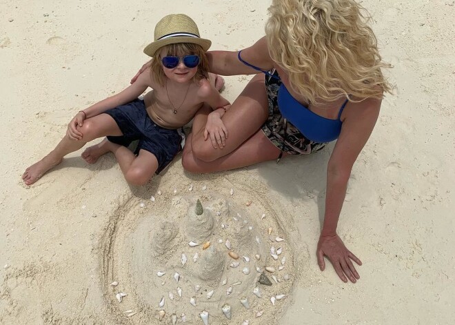 Яна Рудковская и Евгений Плющенко с сыном на Сардинии в августе 2019 года